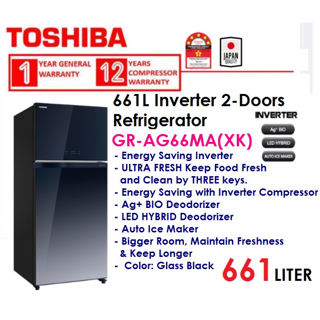 Toshiba 661l Gr Ag66ma Xk Inverter 2 Doors Grag66ma Refrigerator Glass Black Peti Sejuk Shopee Malaysia